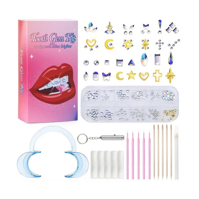 Añada un toque de brillo a su sonrisa y destaque con el kit de pedrería dental, diseñado para personalizar sus dientes de forma segura y directamente desde casa. Este kit completo contiene todo lo que necesitas para iluminar tu sonrisa con elegancia, ya sea para una ocasión especial o para realzar tu estilo diario. Gracias a sus herramientas de alta calidad y su facilidad de uso, este kit es perfecto tanto para principiantes como para aficionados.